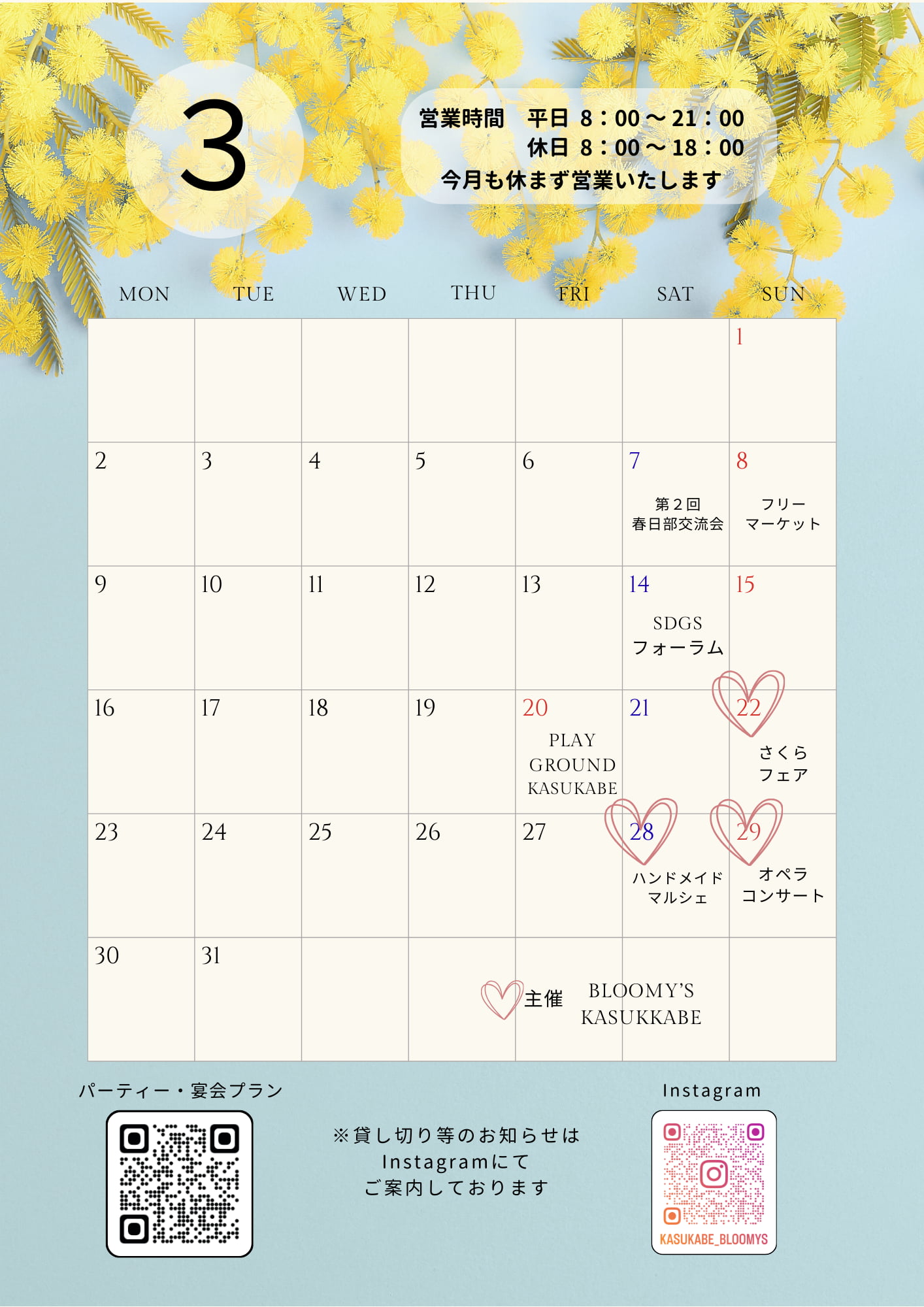 3月の営業予定